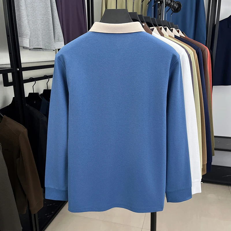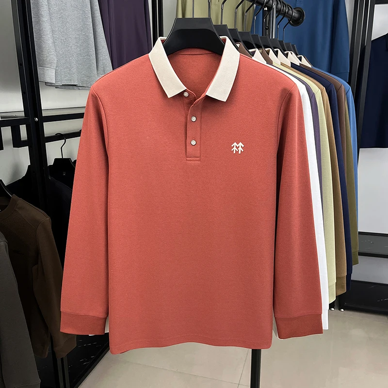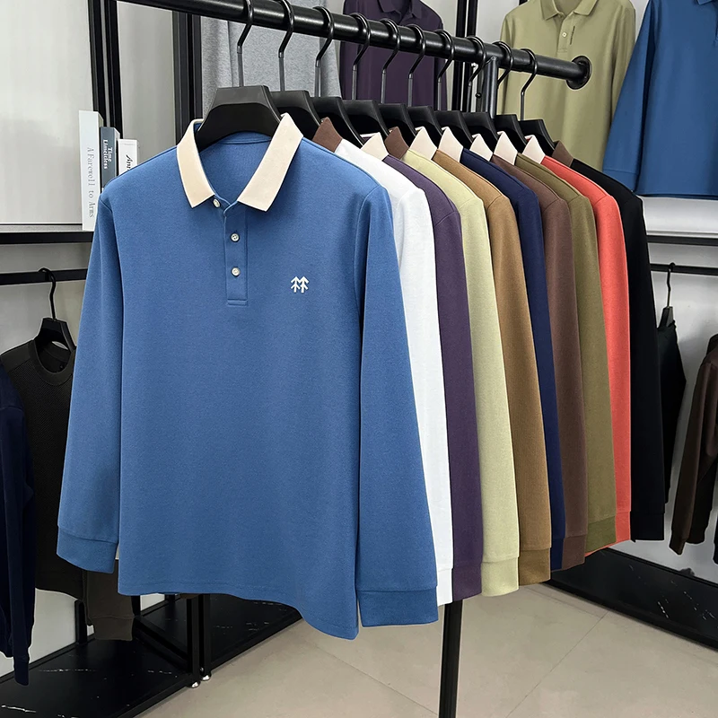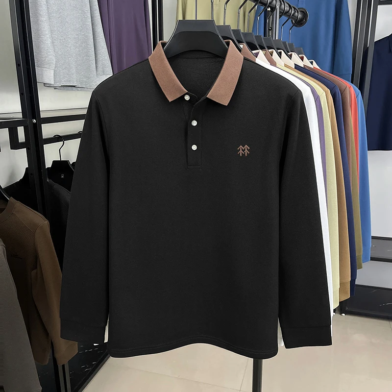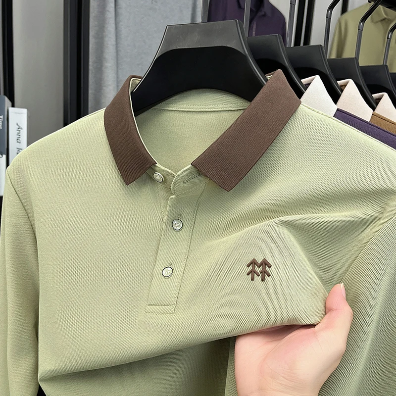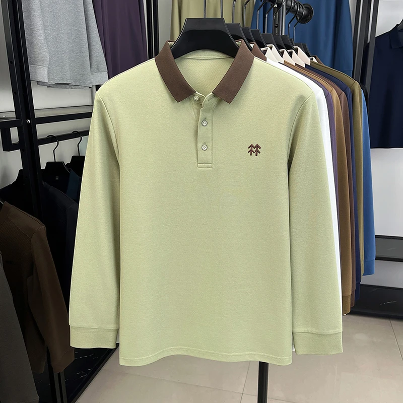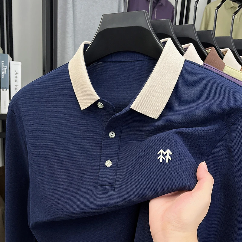 Fashion luxury brand long sleeve polo shirt men's autumn new trend badge embossed design Korean casual silk cotton lapel T-shirt