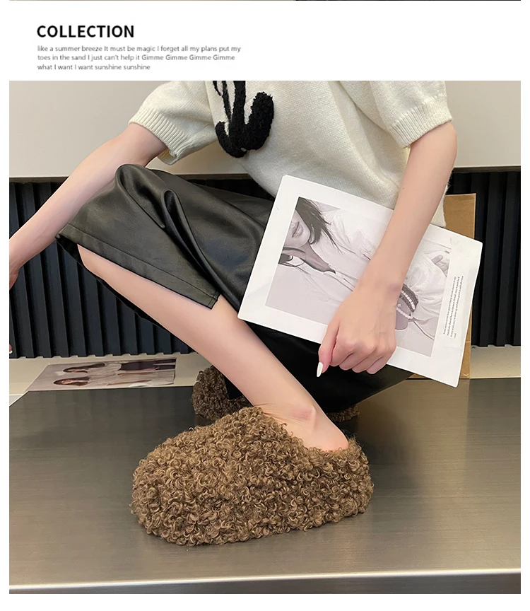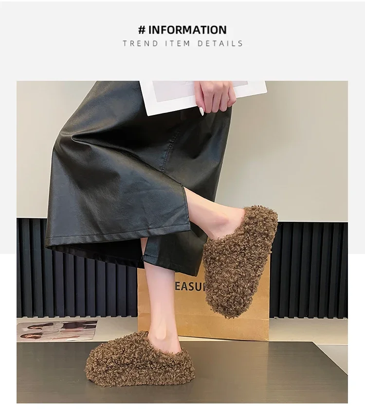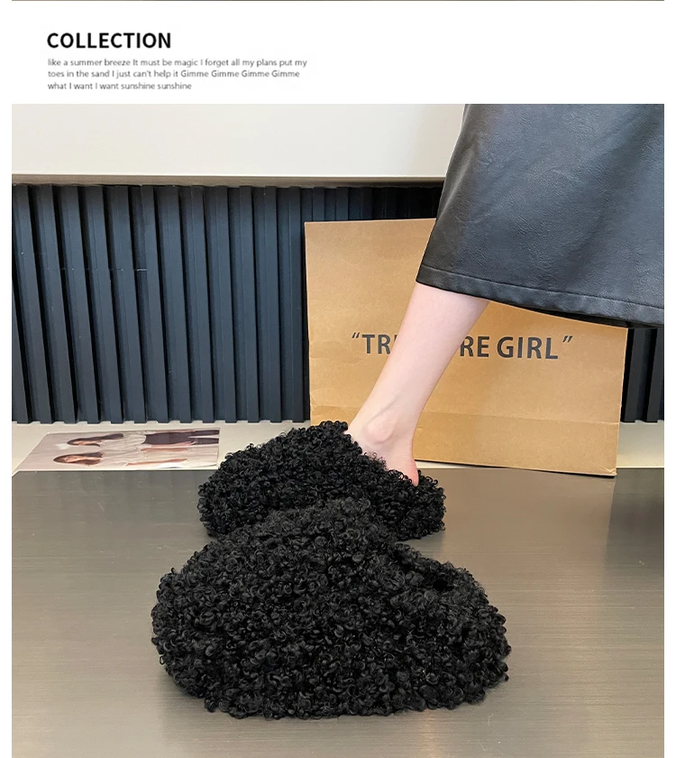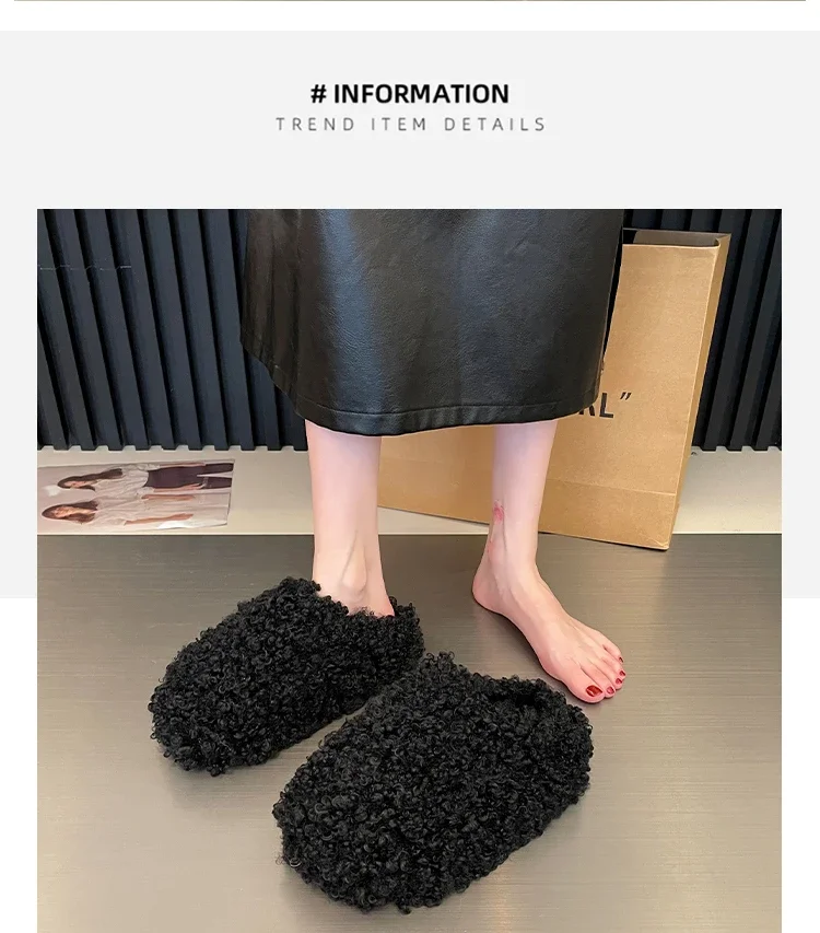 Luxury Plush Slippers for Women 2025 Cover Toe Fur Slides Casual Platform Flip Flops Pantofle New Shoes