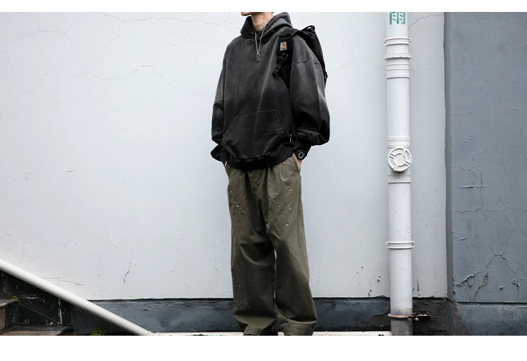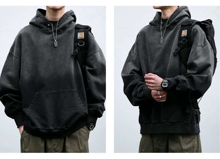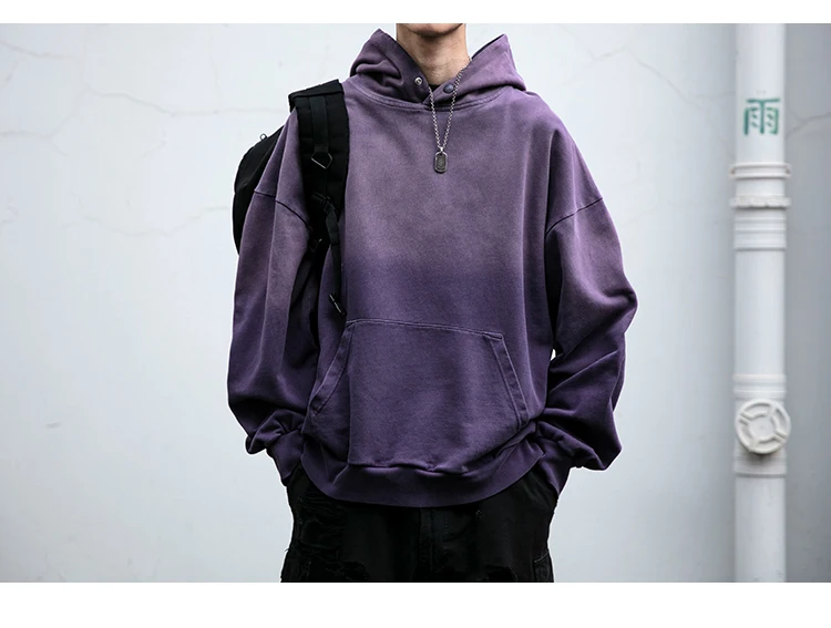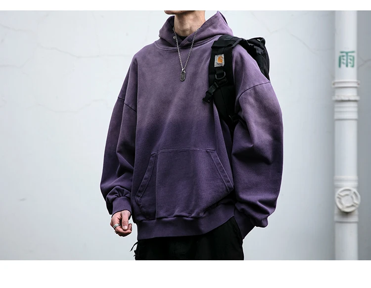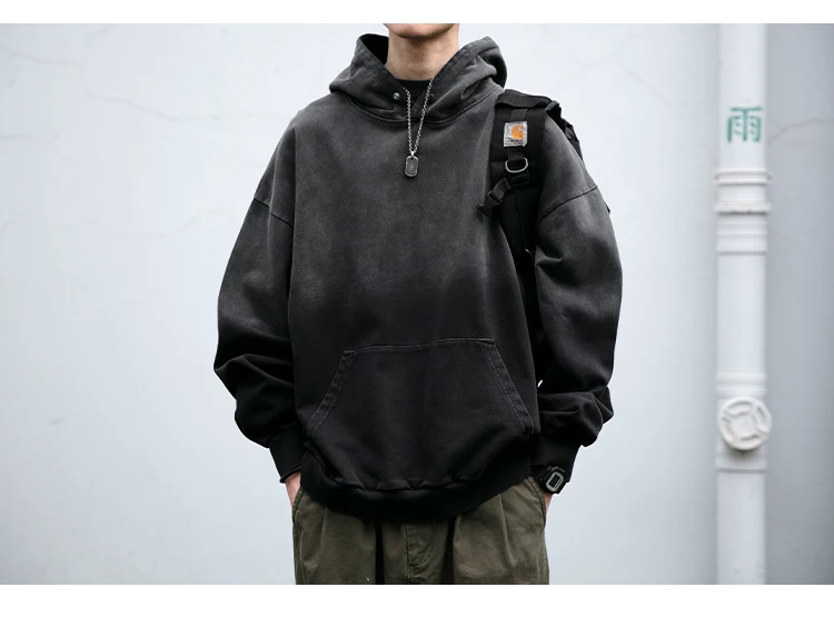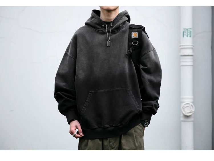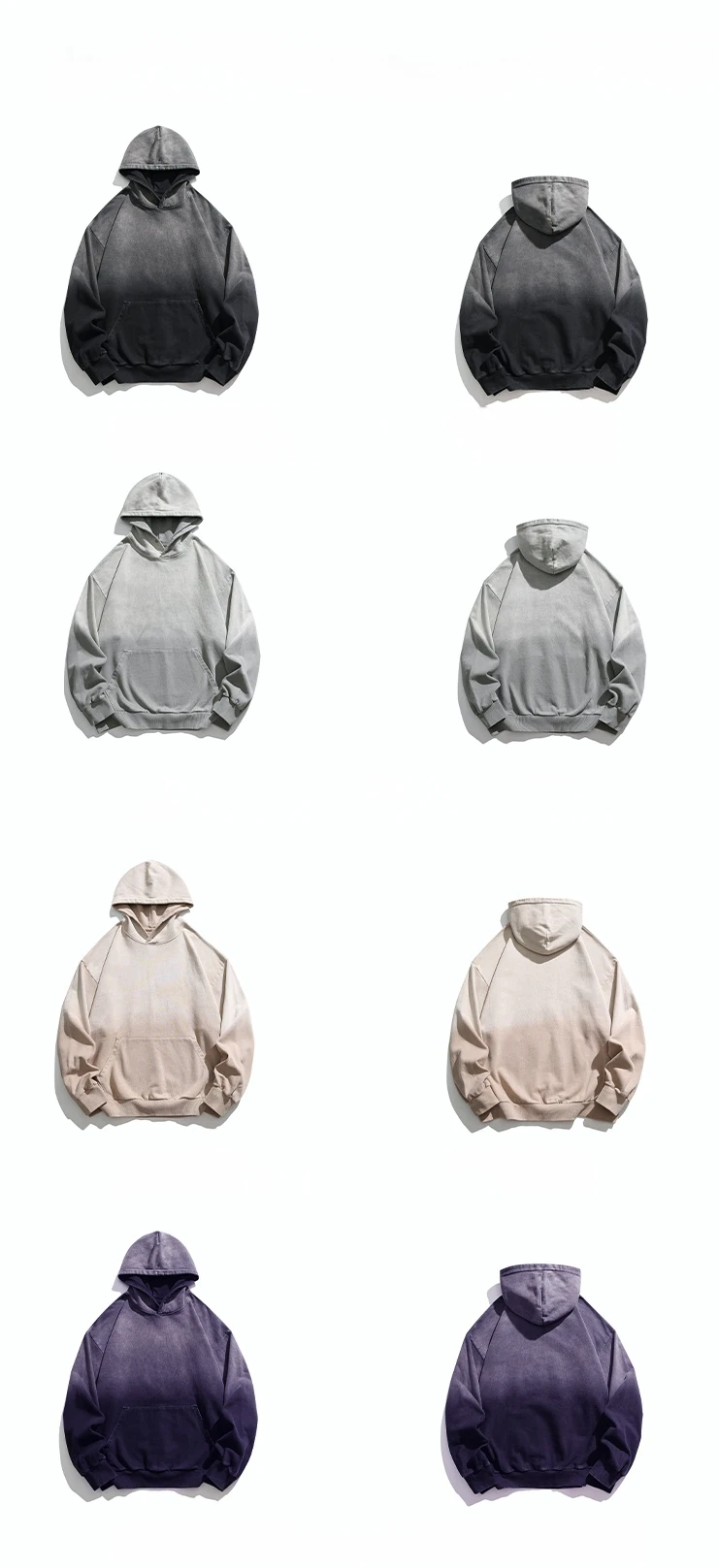 Mens Heavyweight Cotton Hoodie Oversized Streetwear Spring Autumn Garment Dyed Washed Ombre Pullover High Quality Sweatshirt