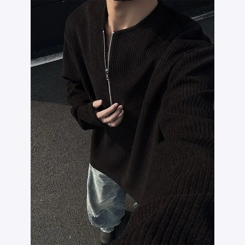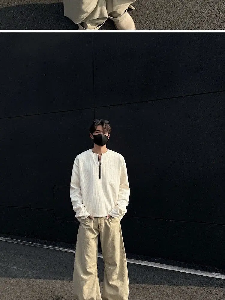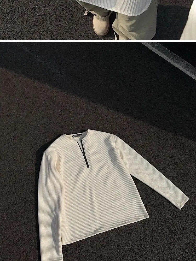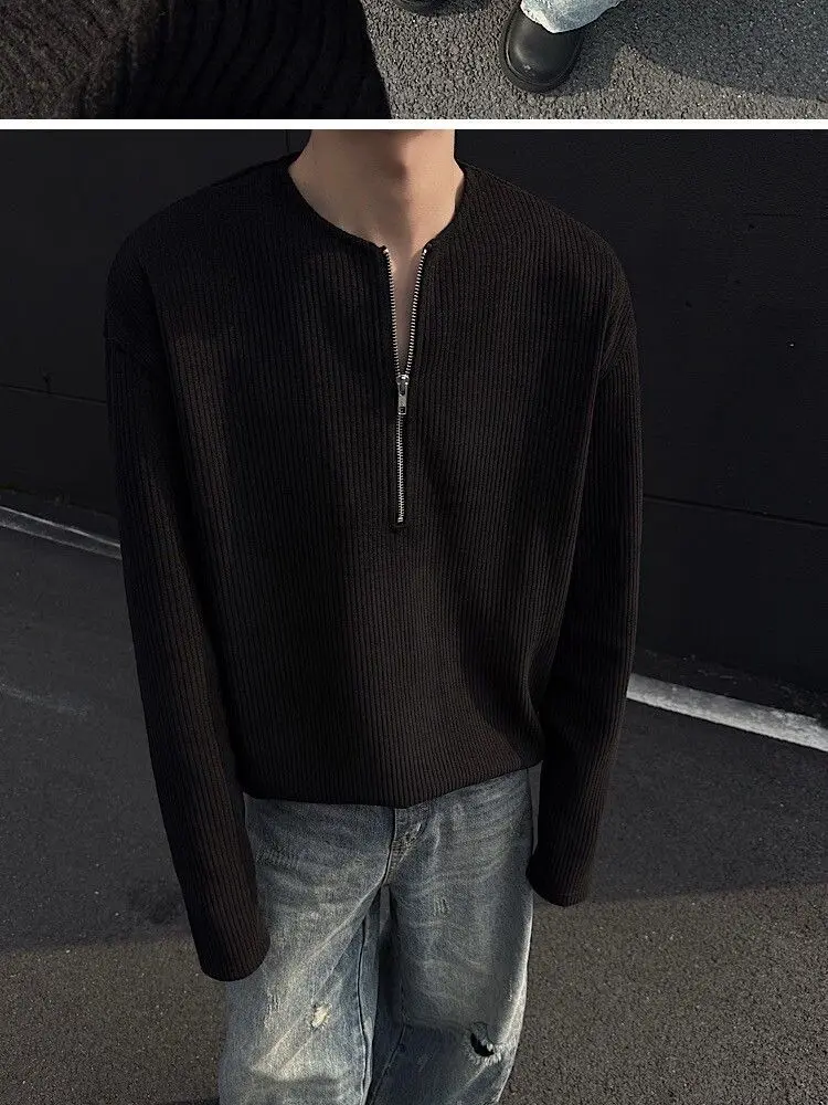 Men's Zipper Patchwork Solid Long Sleeve Trend Tops Spring Autumn Long Sleeve Loose Korean T Shirts Fashion Casual Men Clothing