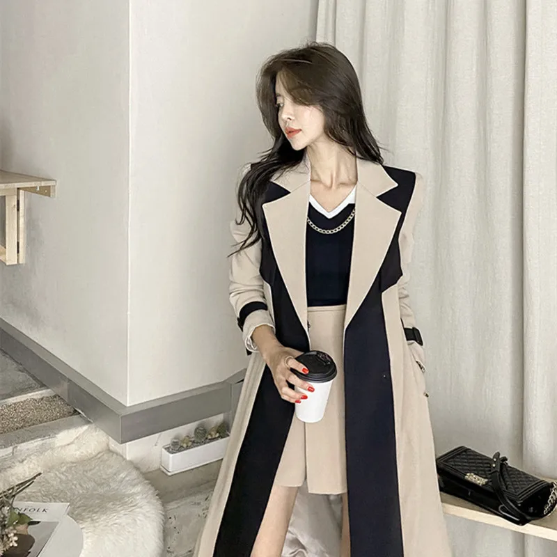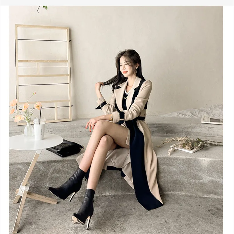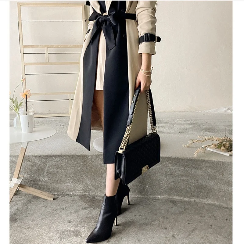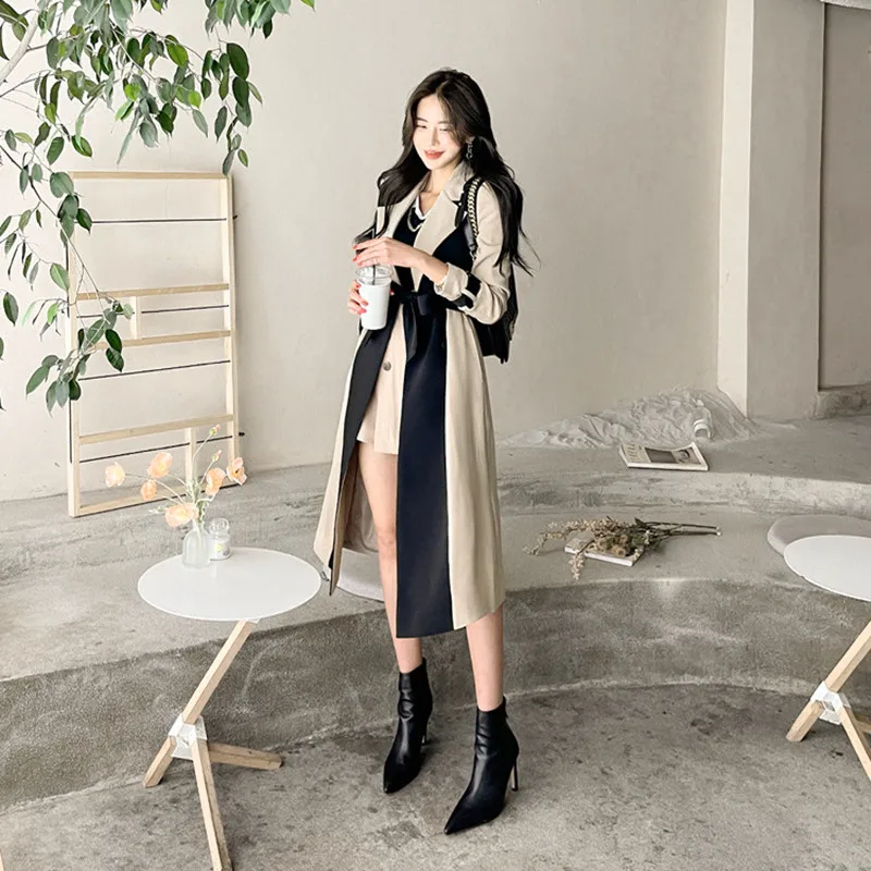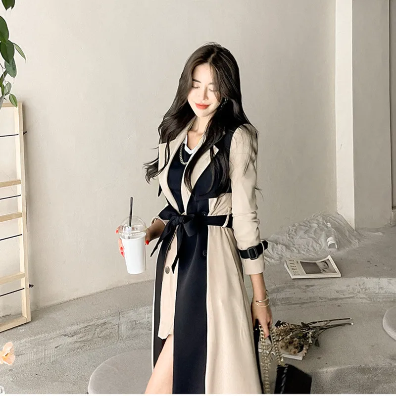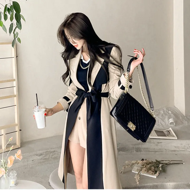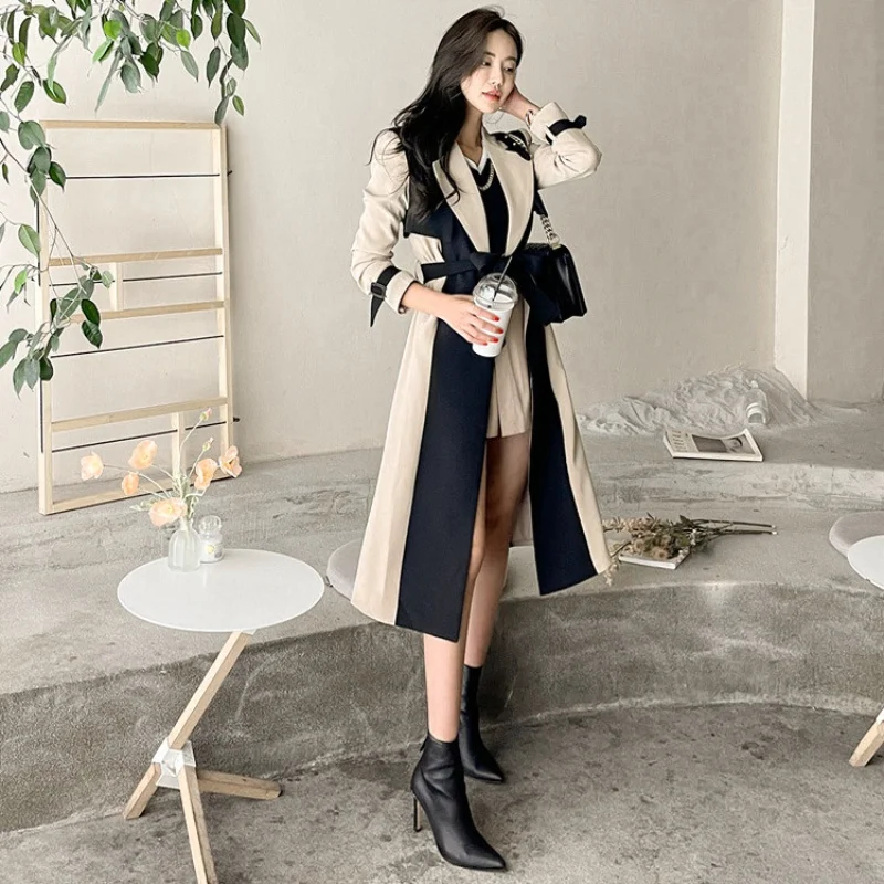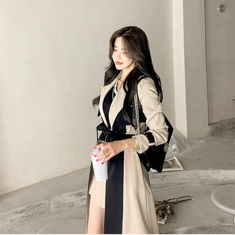 Women's X-Long Trench Coat Spring Autumn Windbreaker Streetwear Outerwear with Belt And Lining